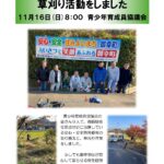 「啓発看板の交換と設置場所の草刈り活動をしました」(御幸学区青少年育成員協議会より)